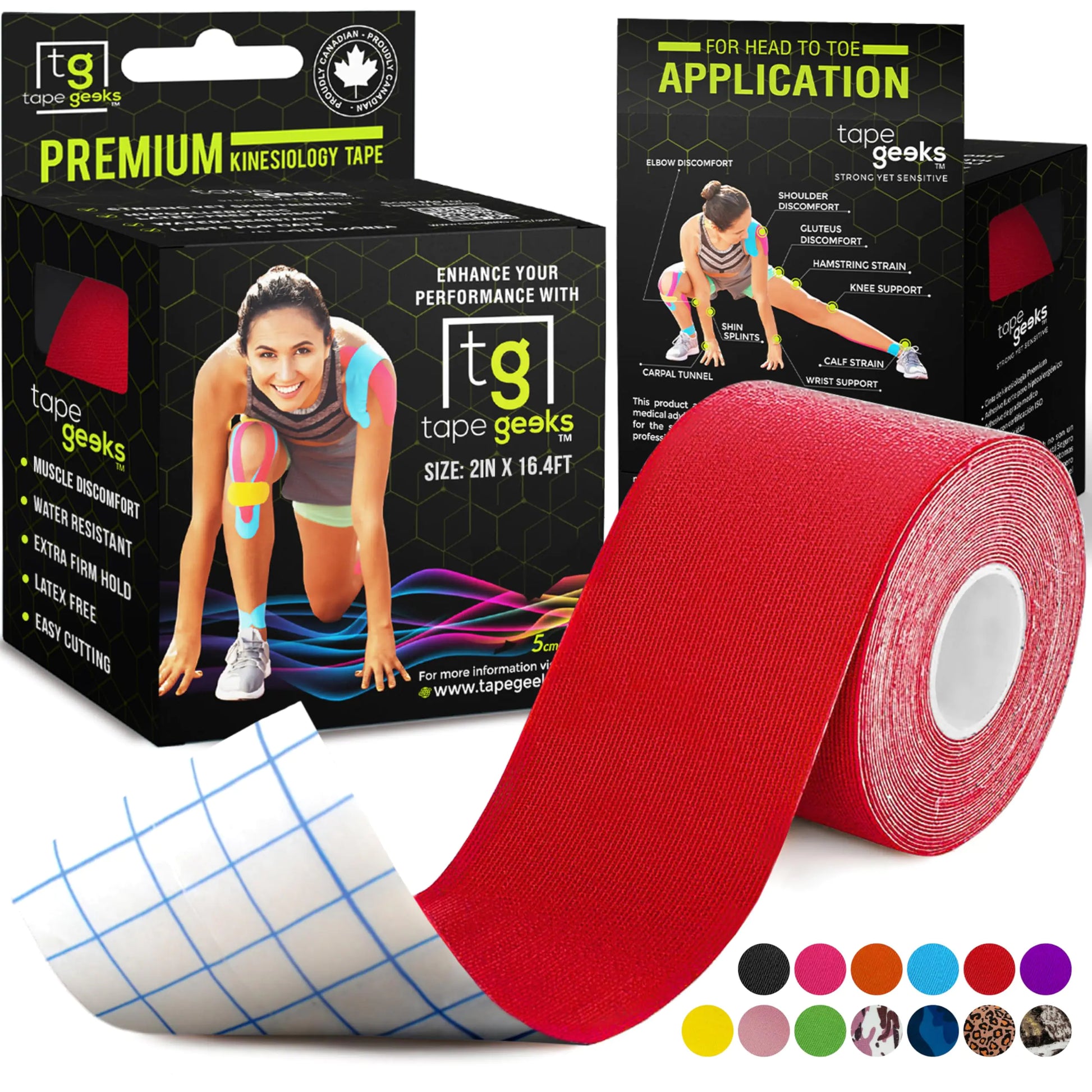 TapeGeeks Kinesiology Tape Athletic Tape - Hypoallergenic Sports K Tape Kinetic Tape Medical Tape Weightlifting Tape Gym Tape Wrist Tape Muscle Tape Knee Tape Ankle Tape Chest Tape Arm Tape
